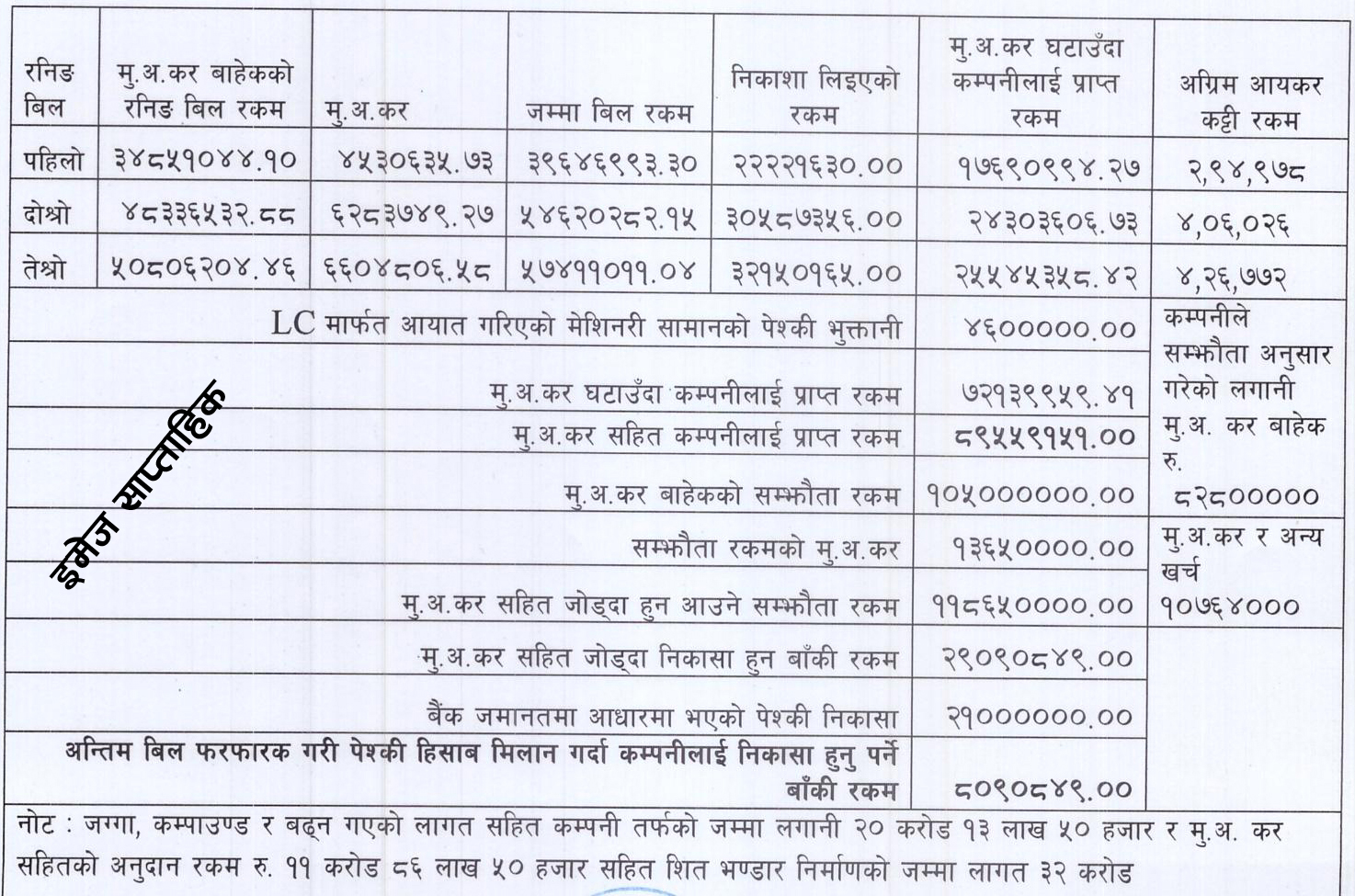 नुवाकोट शीतभण्डार प्रालिका अध्यक्ष एवं प्रदेश सांसद बद्री मैनाली शुक्रवार जारी गरेको विज्ञप्तीमा उल्लेखित आर्थिक विवरण । |